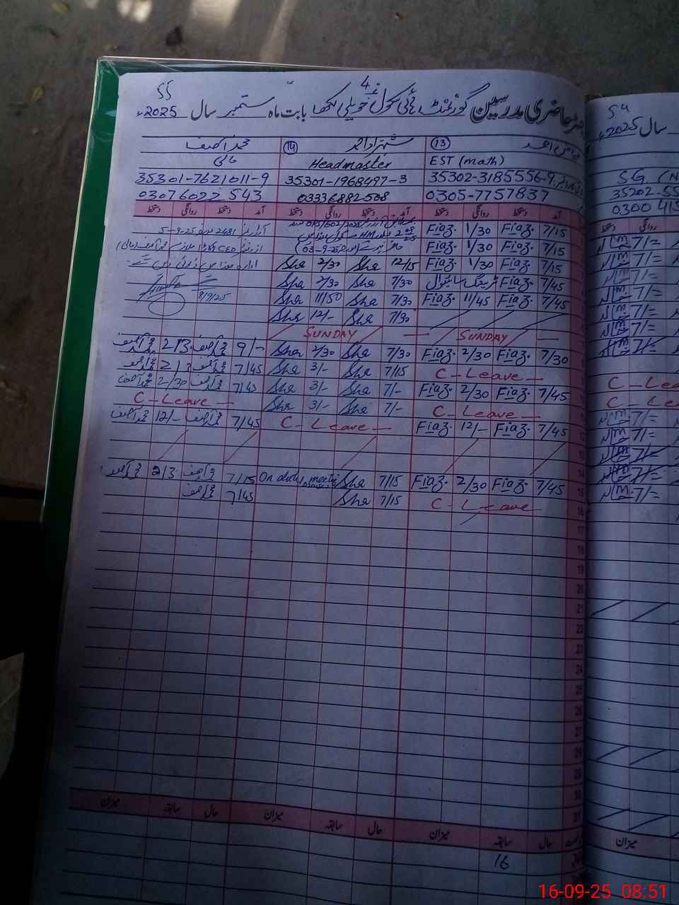 | Name: Sh**** Ah**** Designation: (School Headmaster's/Headmistress's) HM OPS Phone/Cell Number: 03**** |