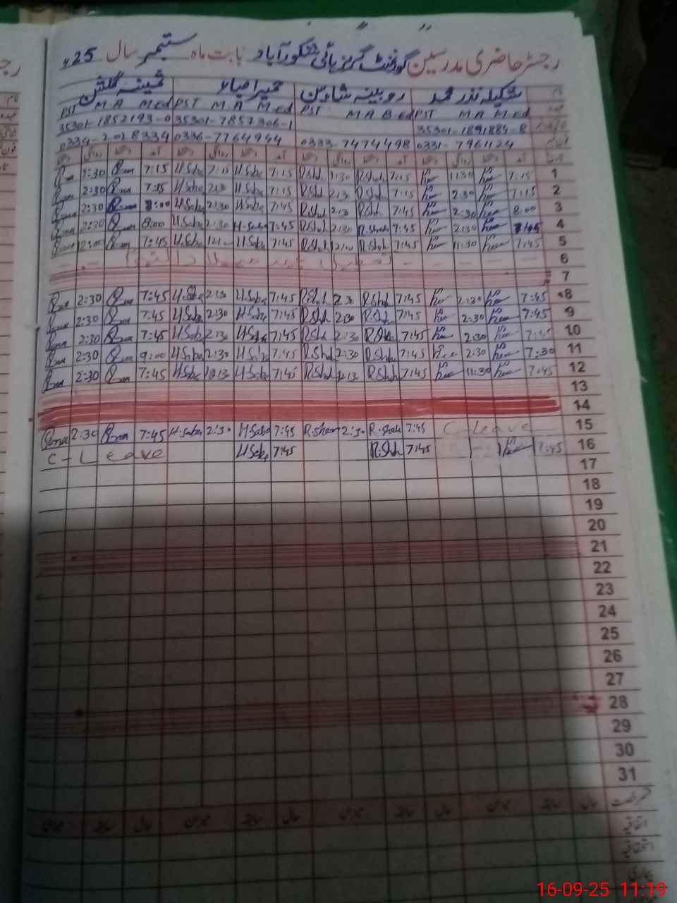 | CNIC | Full Name | Designation | R/C | Absence During Last Calender Month |
