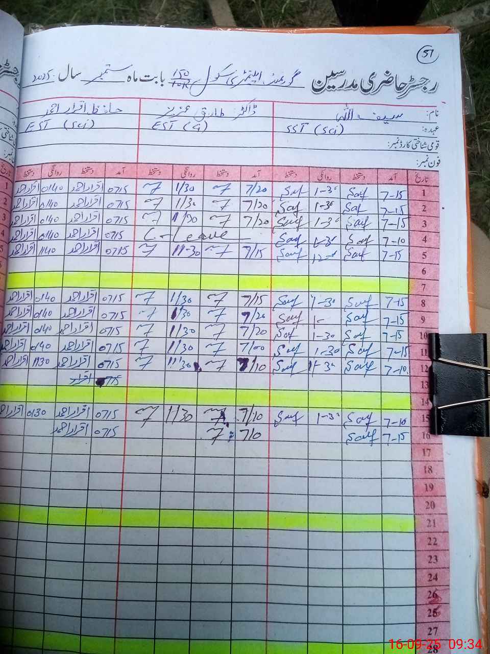 | Name: ZI**** Designation: (School Headmaster's/Headmistress's) SSE(ENG) Phone/Cell Number: 03**** |
