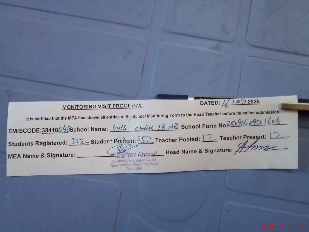 | EMIS Code: 38410048 | Name of School: GHS CHAK NO.18 NB | |||