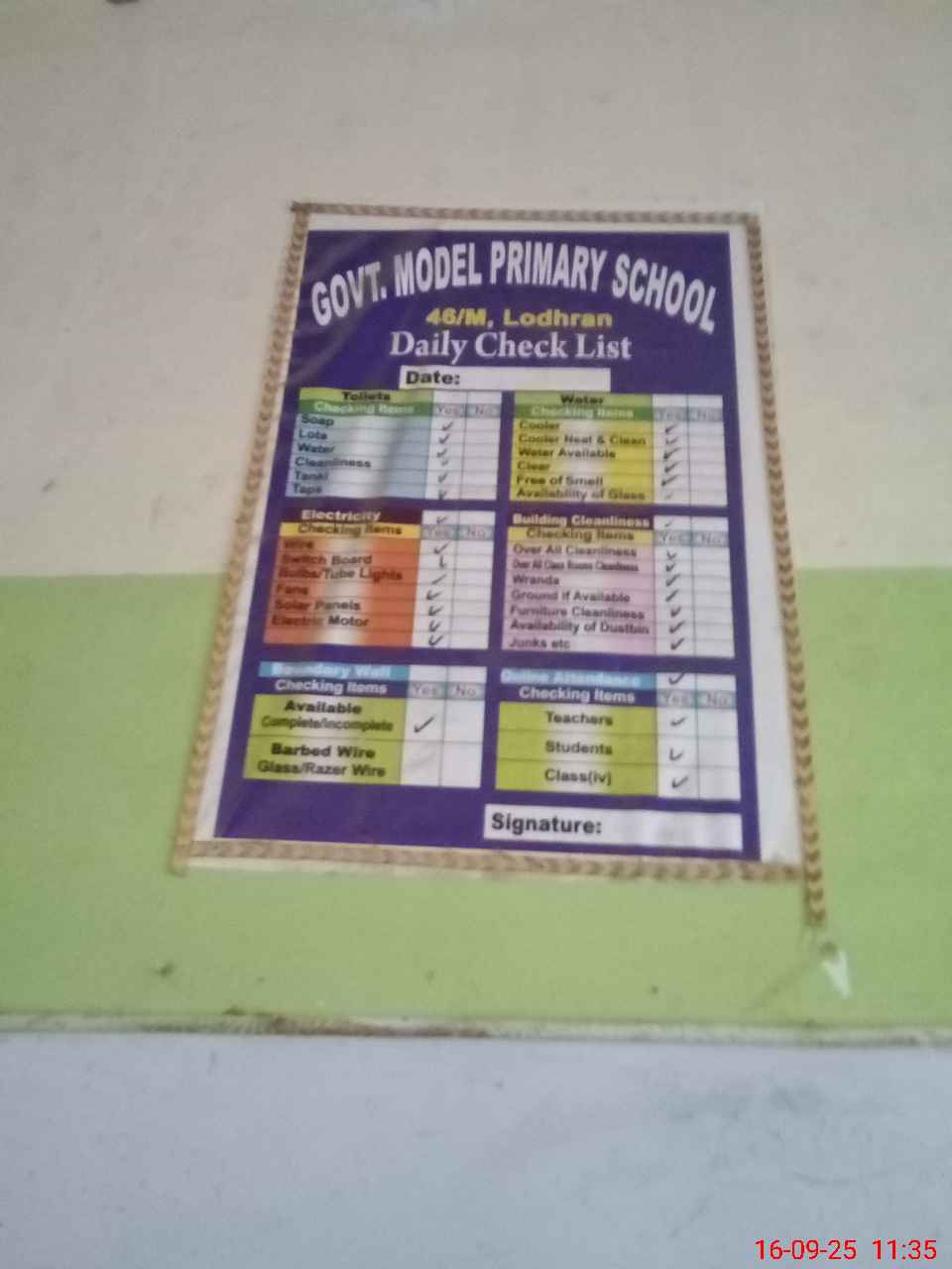 | Certified that this School was Inspected by the Undersigned MEA/DMO Today and the Information Stated Above is as Per Record. | |||||
