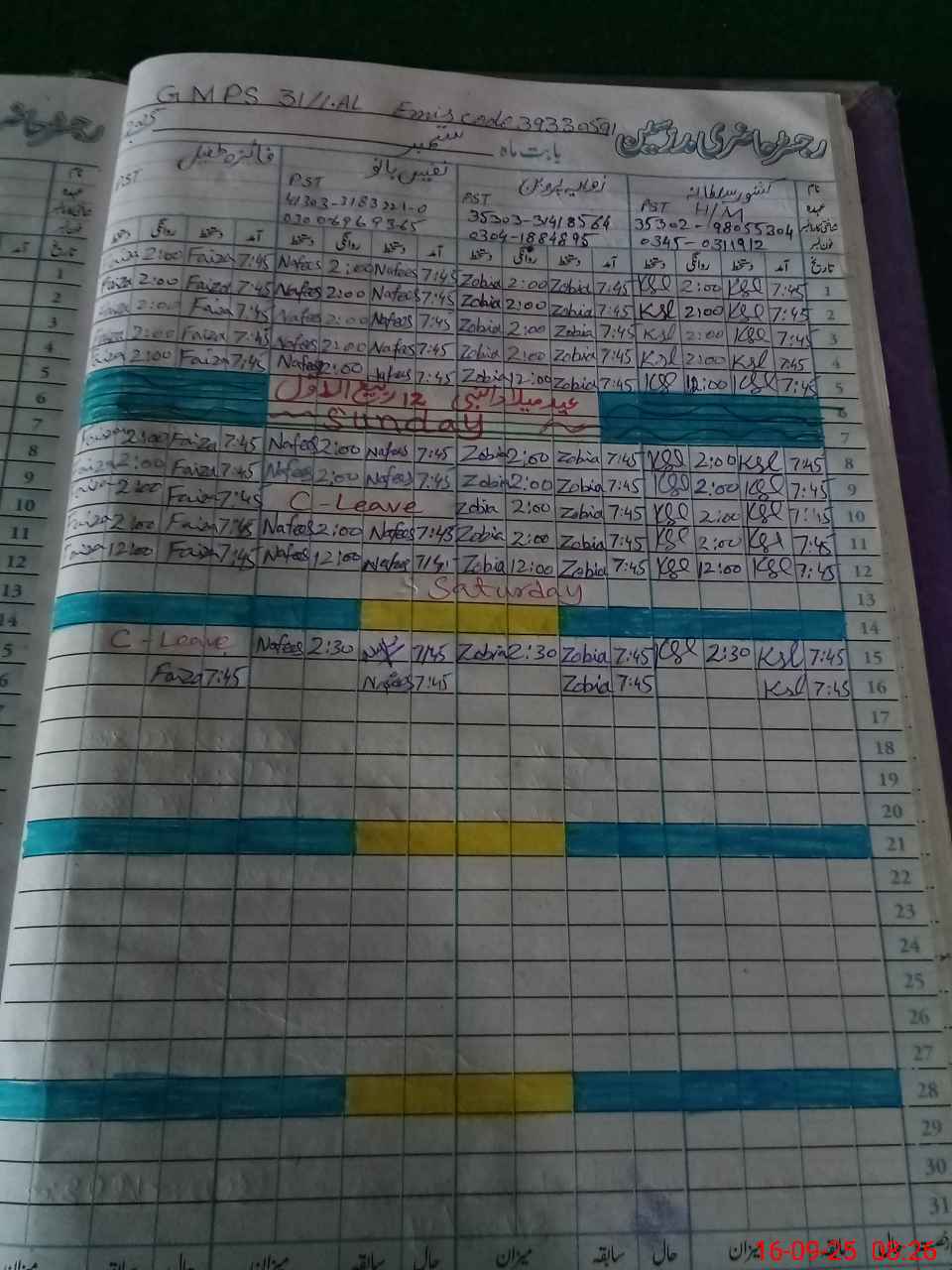 | CNIC | Full Name | Designation | R/C | Absence During Last Calender Month |