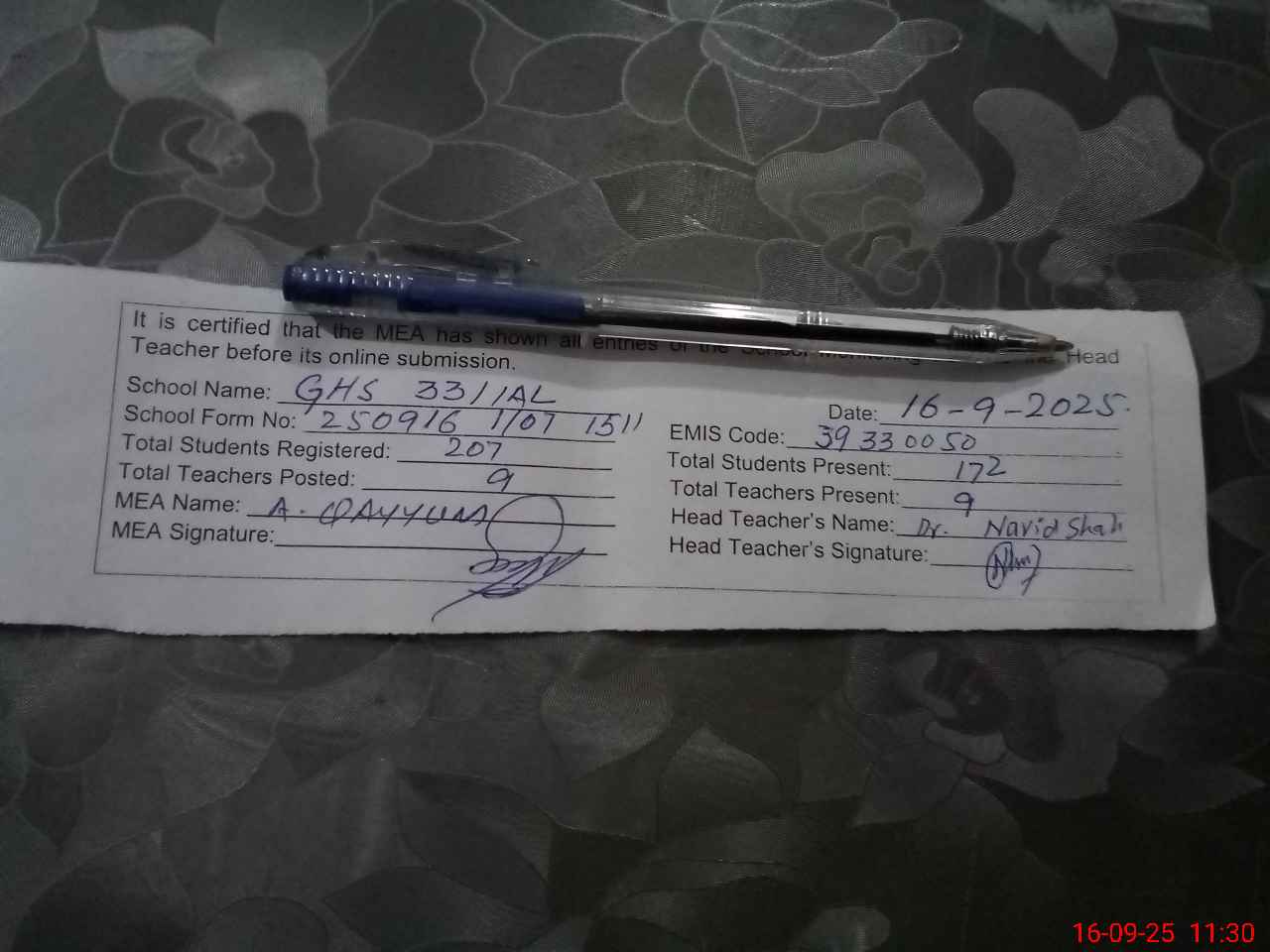 | Certified that this School was Inspected by the Undersigned MEA/DMO Today and the Information Stated Above is as Per Record. | |||||