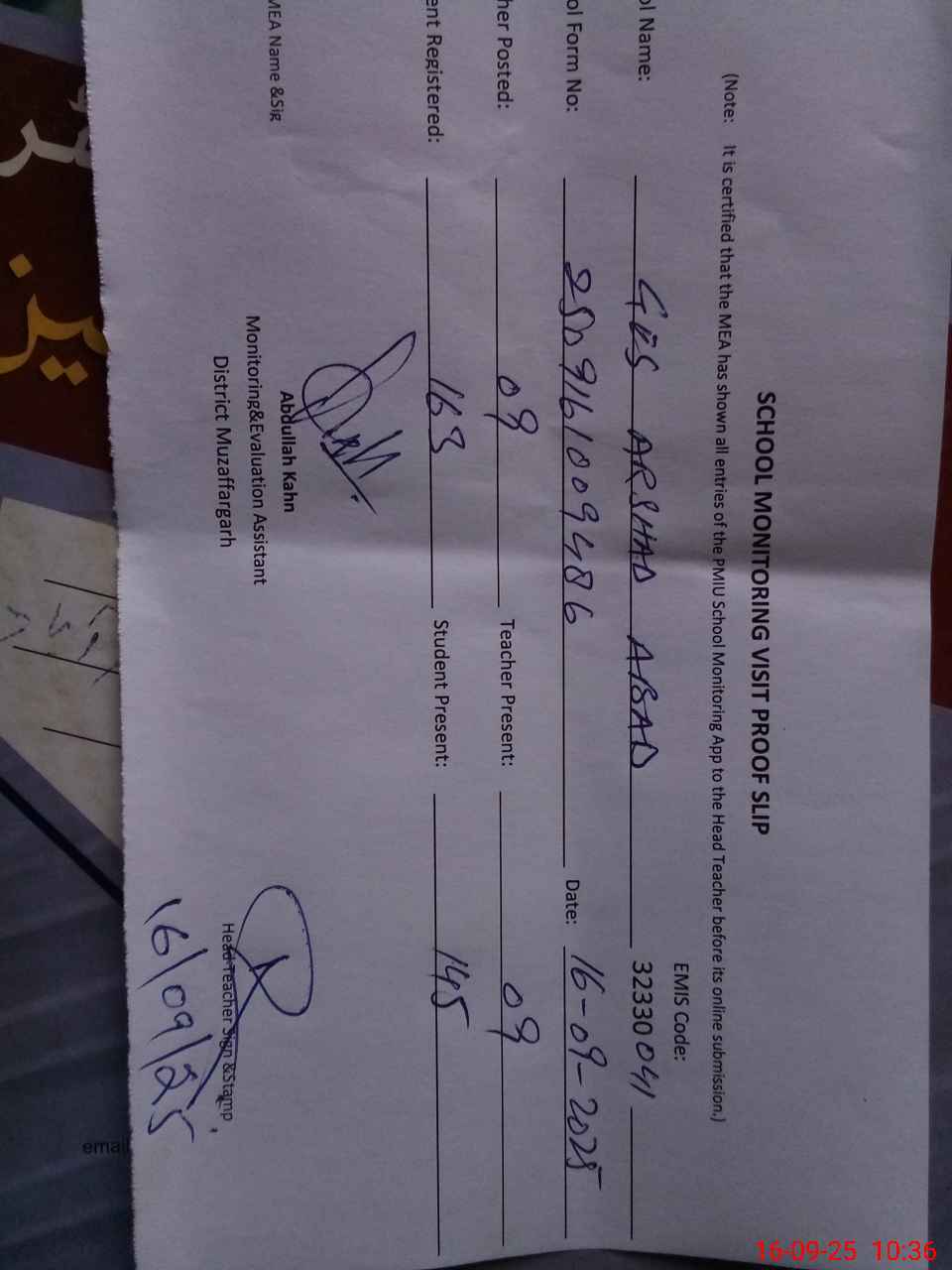 | EMIS Code: 32330041 | Name of School: GES ARSHAD ABAD | |||