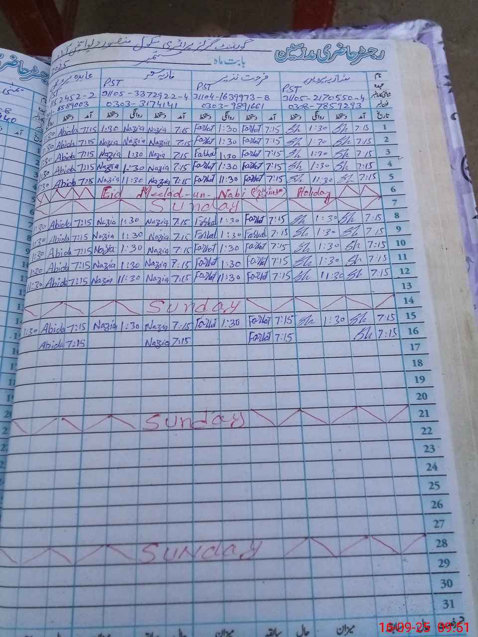 | CNIC | Full Name | Designation | R/C | Absence During Last Calender Month |