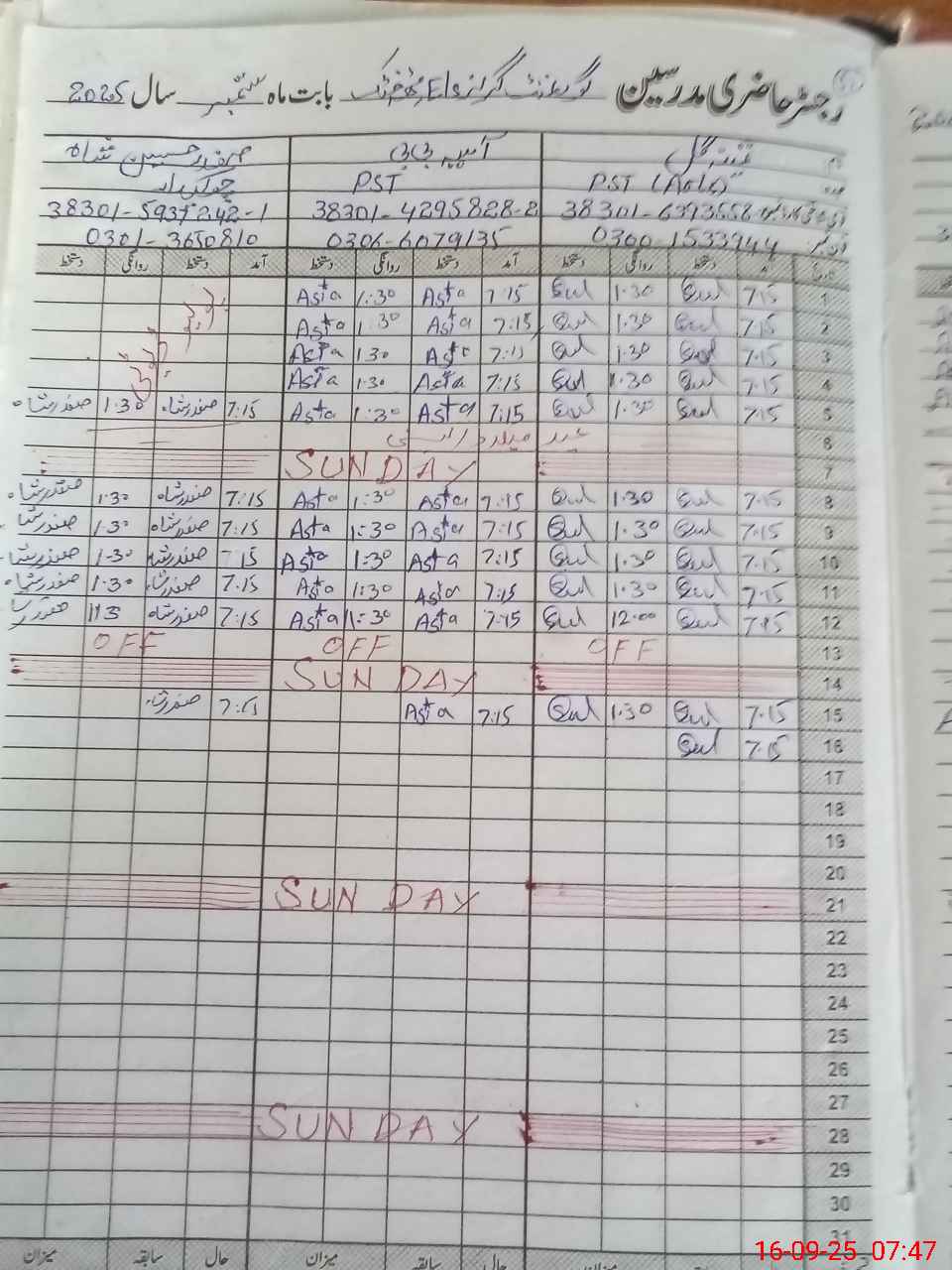 | Name: Sh**** Zi**** Designation: (School Headmaster's/Headmistress's) SST Phone/Cell Number: 03**** |