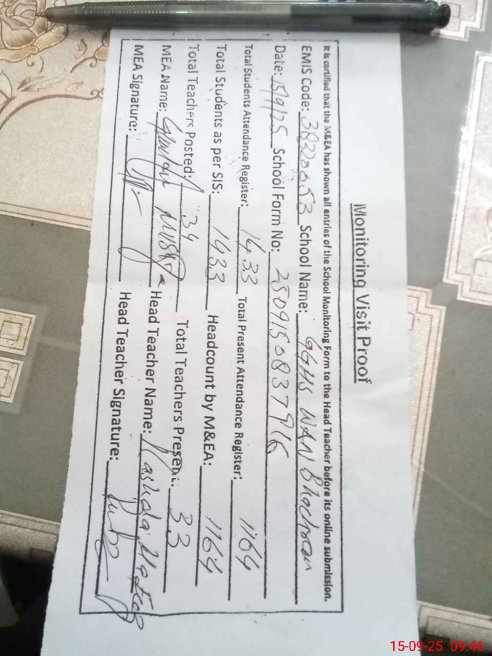 | EMIS Code: 38320053 | Name of School: GGHS WAN BHACHRAN | |||