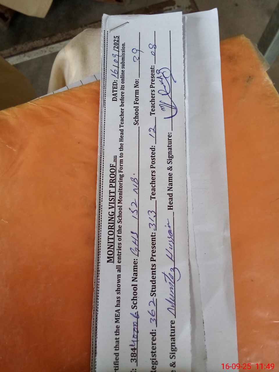 | Certified that this School was Inspected by the Undersigned MEA/DMO Today and the Information Stated Above is as Per Record. | |||||