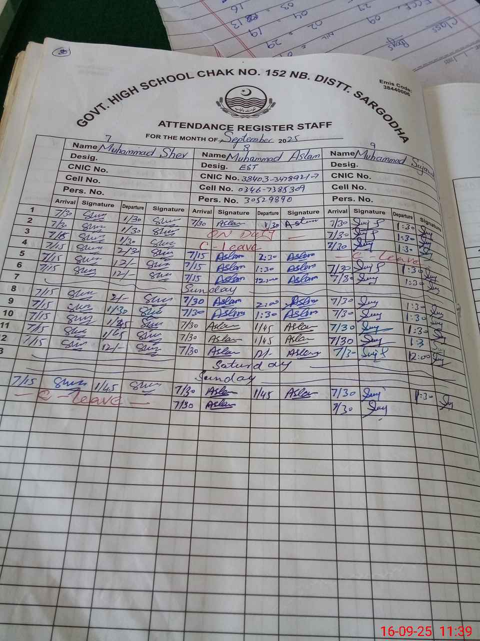 | EMIS Code: 38440006 | Name of School: GHS CHAK NO.152 NB | |||