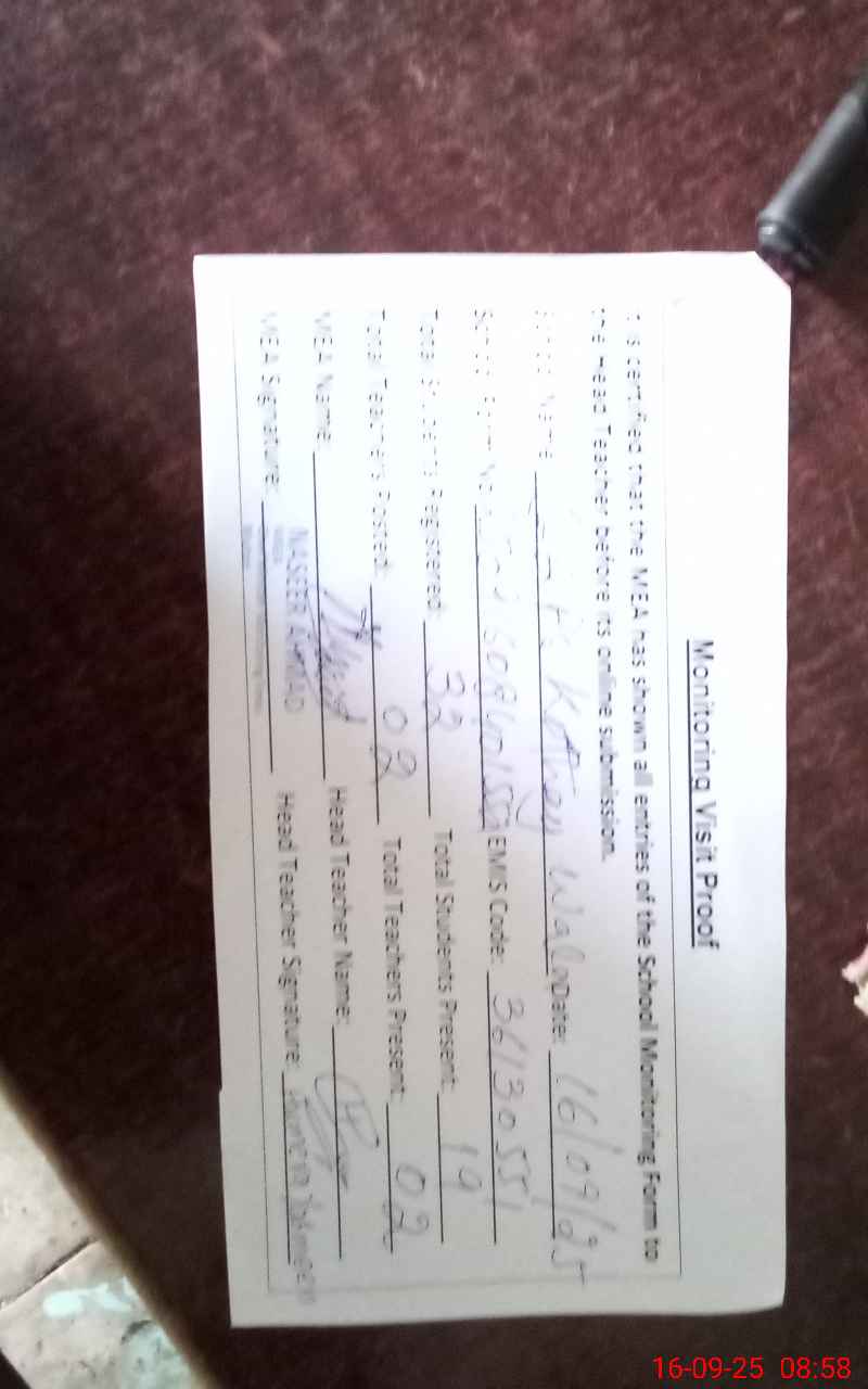 | Attendance Register | Head Teacher | MEA with School | Visit Proof |