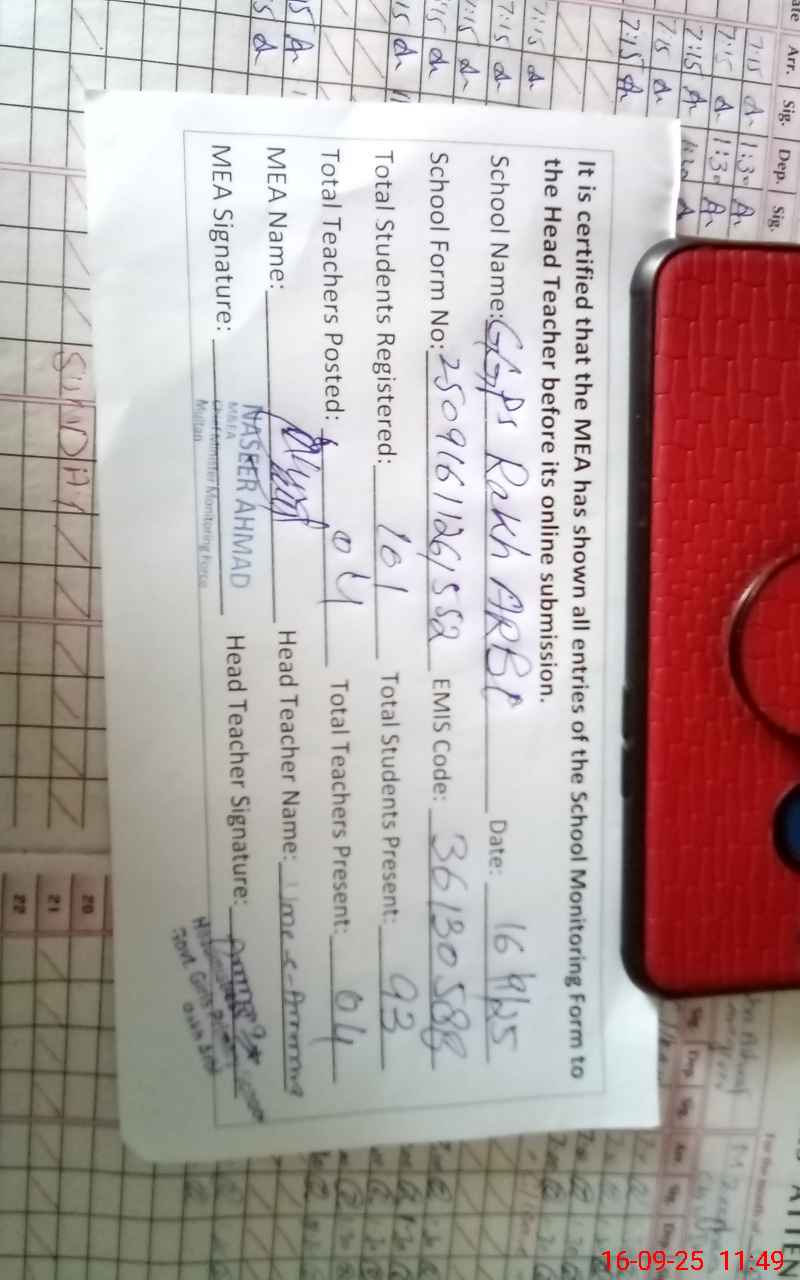 | EMIS Code: 36130588 | Name of School: GGPS RAKH AARBI JALALABAD | |||