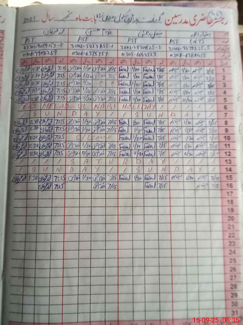 | Name: IM**** AH**** Designation: (School Headmaster's/Headmistress's) PST Phone/Cell Number: 03**** |