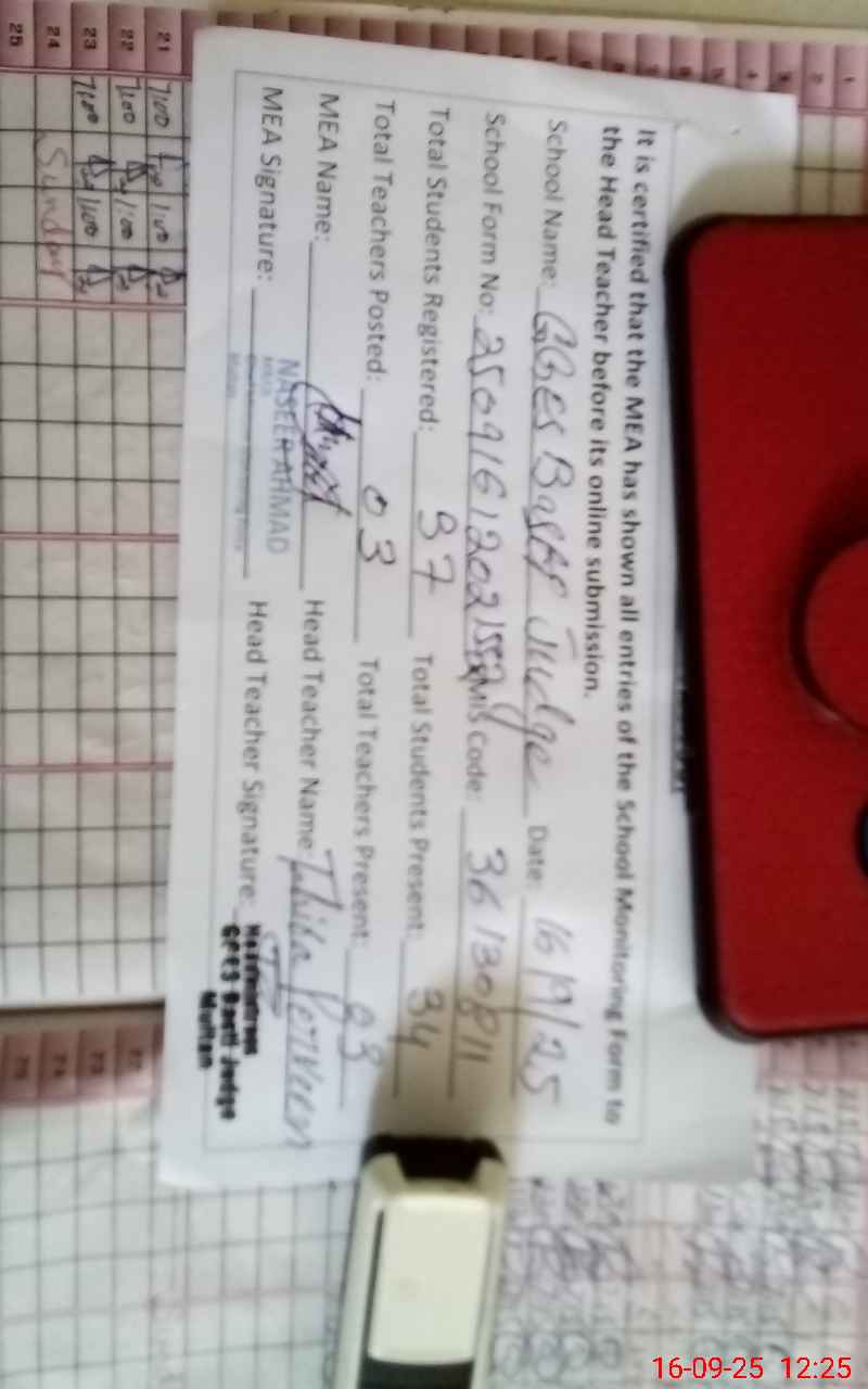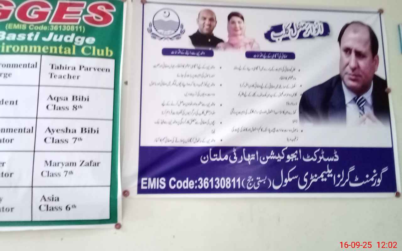 | EMIS Code: 36130811 | Name of School: GGES Basti Judge Multan | |||