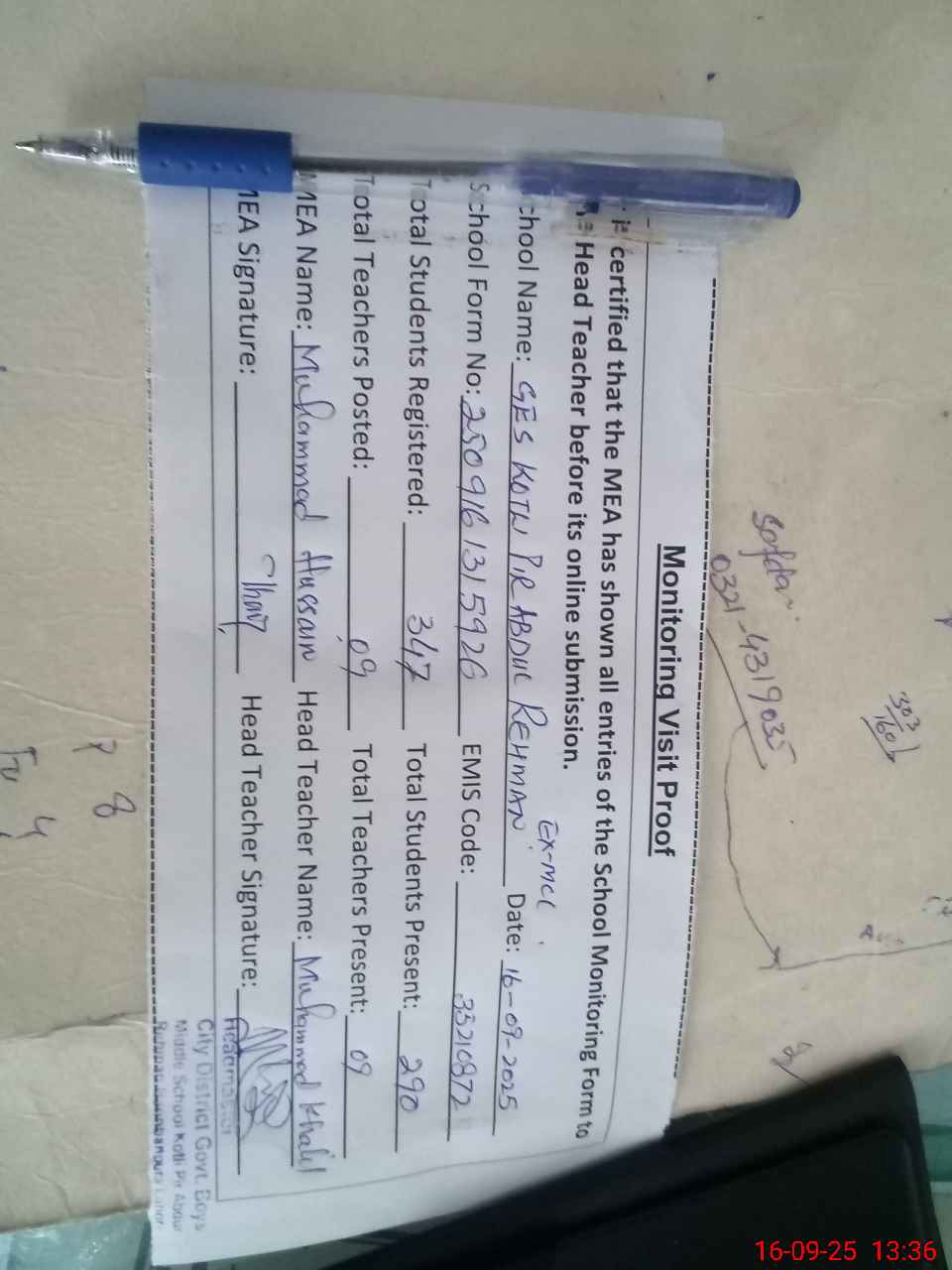 | EMIS Code: 35210872 | Name of School: GES KOTLI PIR ABDUL REHMAN (EX-MCL) | |||