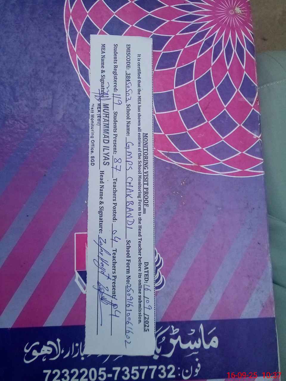 | EMIS Code: 38450503 | Name of School: GMPS CHAK BANDI | |||