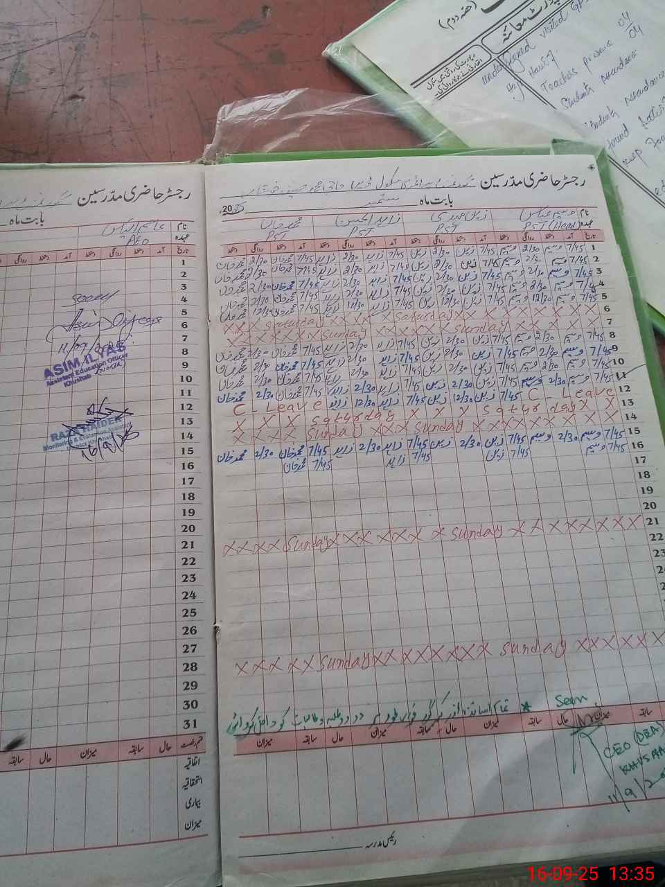 | CNIC | Full Name | Designation | R/C | Absence During Last Calender Month |