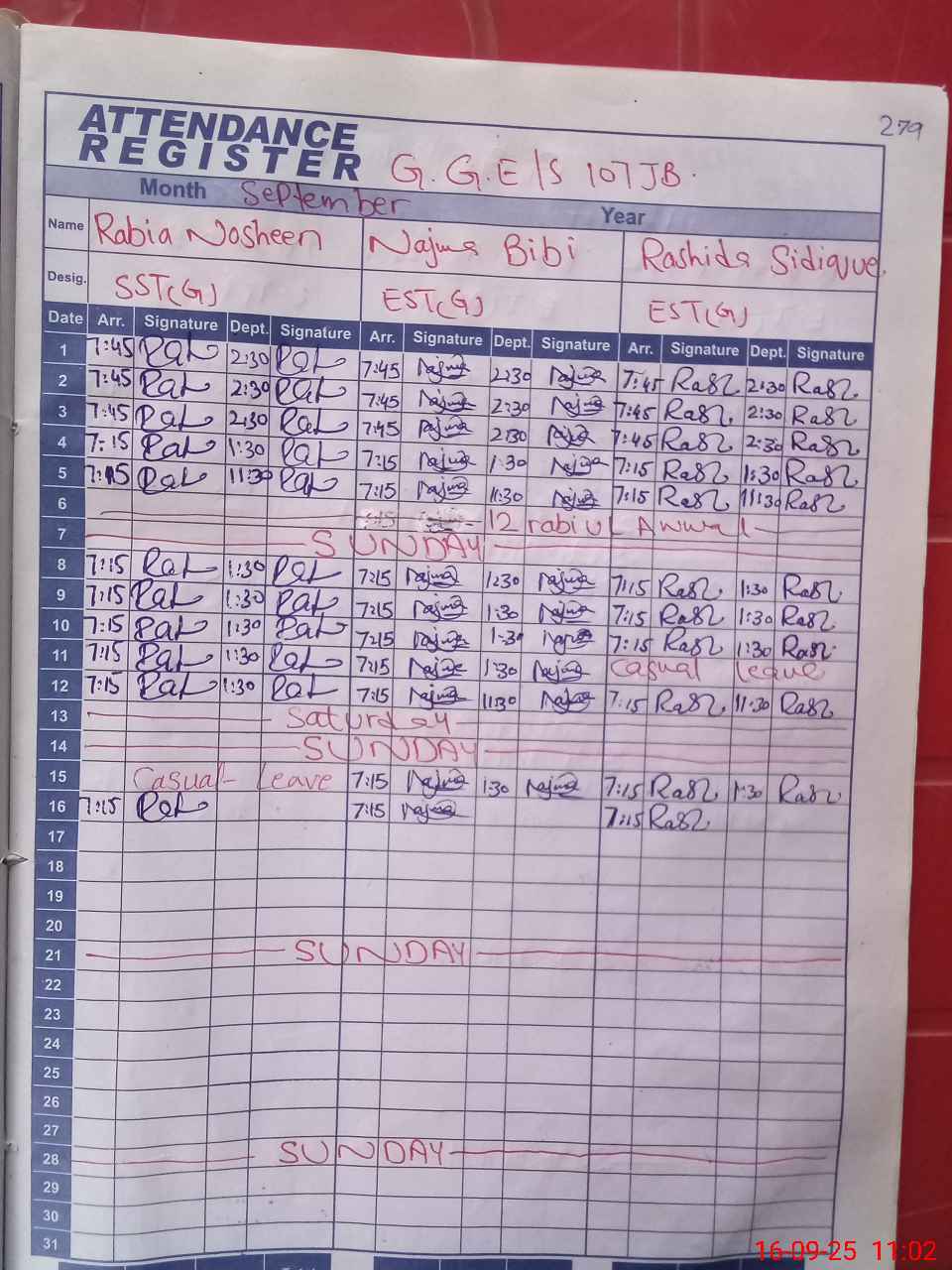 | CNIC | Full Name | Designation | R/C | Absence During Last Calender Month |