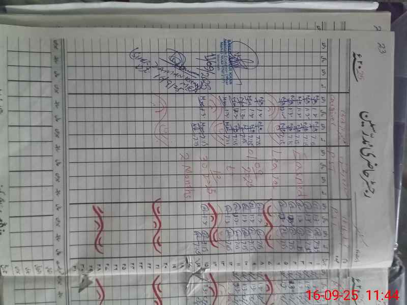 | CNIC | Full Name | Designation | R/C | Absence During Last Calender Month |