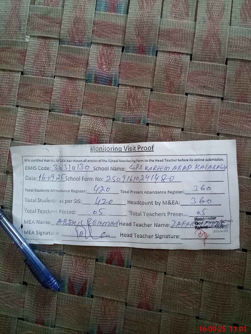| EMIS Code: 38310130 | Name of School: GPS KAREEM ABAD KALABAGH | |||