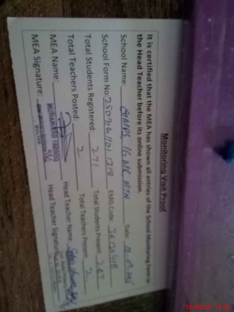 | EMIS Code: 36130418 | Name of School: GMPS 16 M R P/O 16 MR | |||
