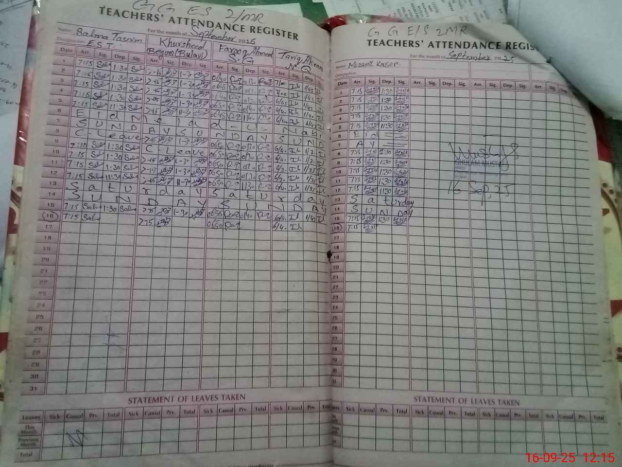 | Monitoring Date: 16-09-2025 | Start Time: 16-09-2025 11:58 AM | End Time: 16-09-2025 12:21 PM | Name of MEA: Gh**** Mu**** | |