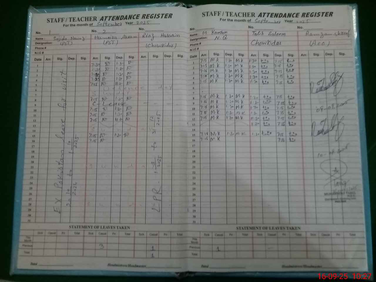 | Remarks (Use Separate Page if Required): TAB NOT AVAILABLE SO STUDENTS STRENGTH COULD NOT VERIFIED FROM SIS CHOWKIDAR RIAZ HUSSAIN IS ON LPR UP TILL 31 DECEMBER 2025 STUDENTS ATTENDENCE LIST OF PREVIOUS SESSION | |||||