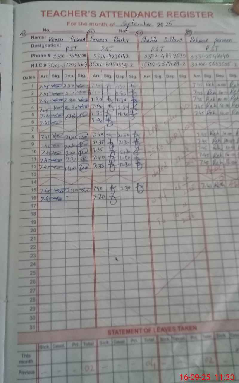 | Remarks (Use Separate Page if Required): 01 teacher is absent due to valid letter of temporary duty was not available | |||||