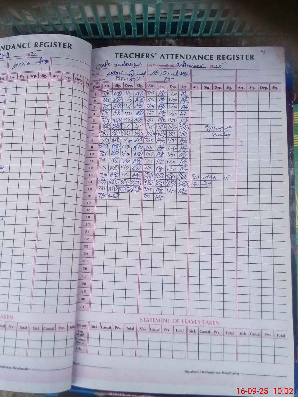 | Leave | Duty | Absent | Maternity | Medical | Ex- Pak |