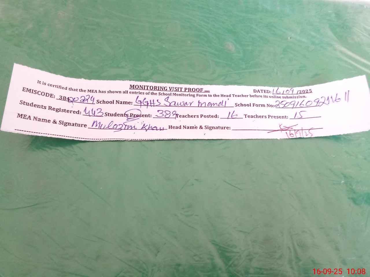 | EMIS Code: 38420224 | Name of School: GGHS SAWAR MANDI RD | |||