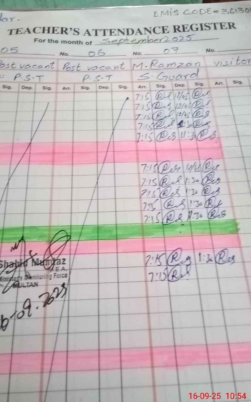 | Name: MRi**** Designation: (School Headmaster's/Headmistress's) PST/PTC/JV Phone/Cell Number: 03**** |