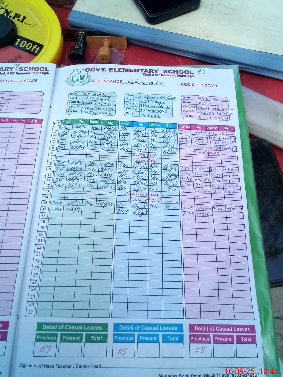 | CNIC | Full Name | Designation | R/C | Absence during last cal. month |