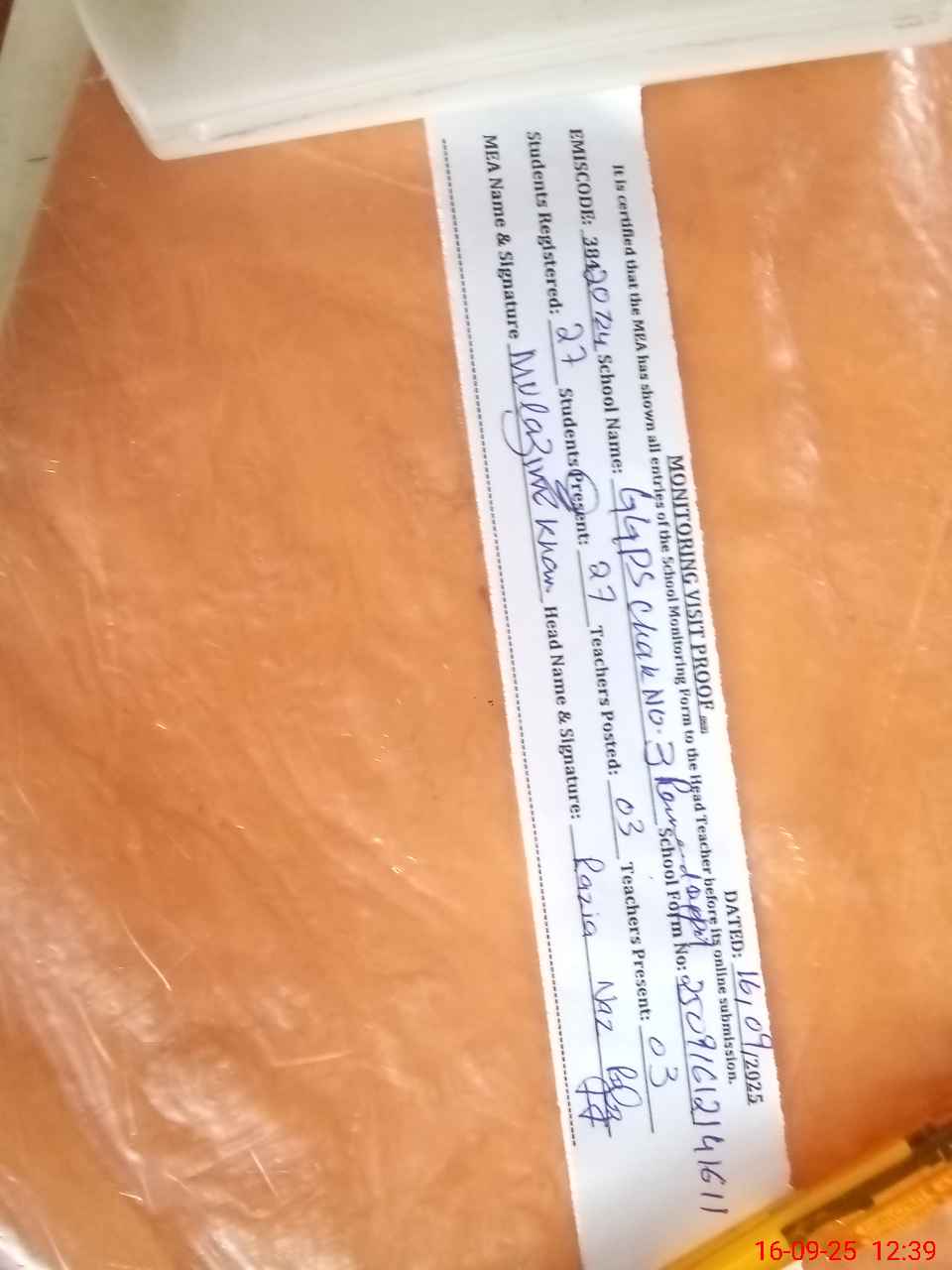 | Attendance Register | Head Teacher | MEA with School | Visit Proof |