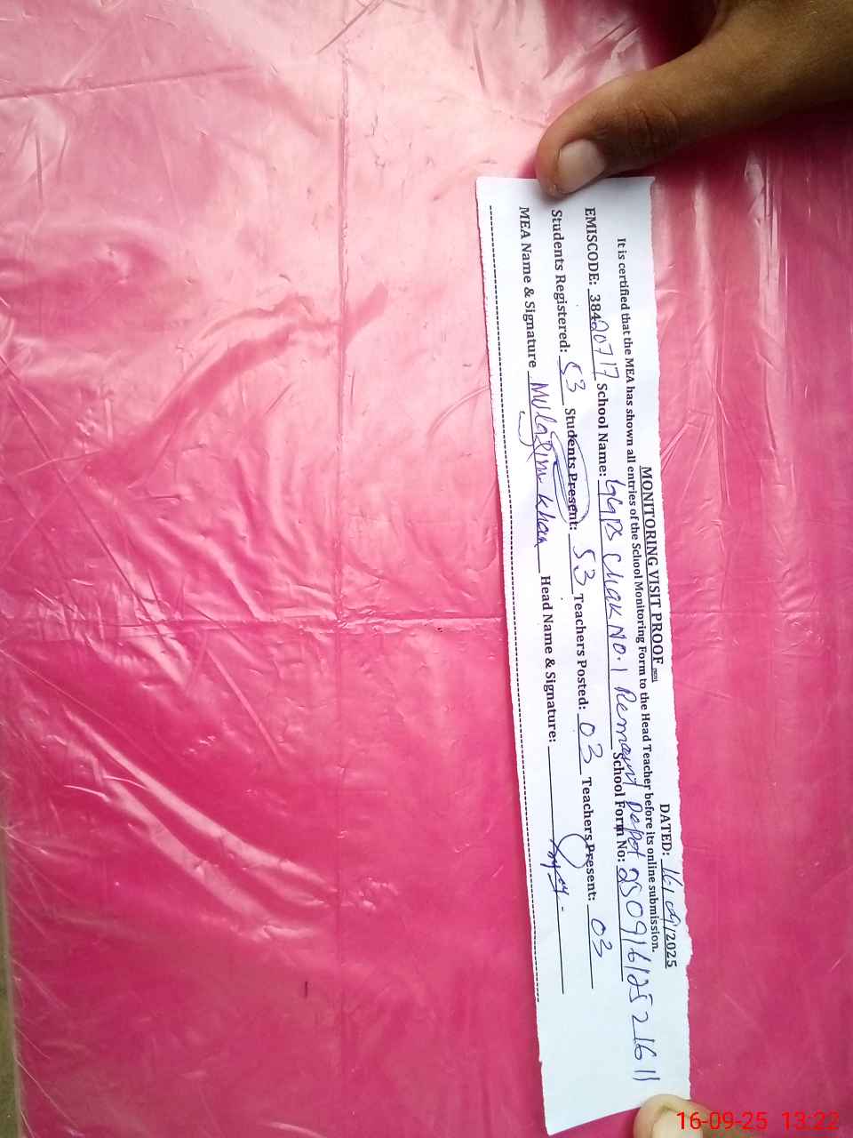 | Attendance Register | Head Teacher | MEA with School | Visit Proof |