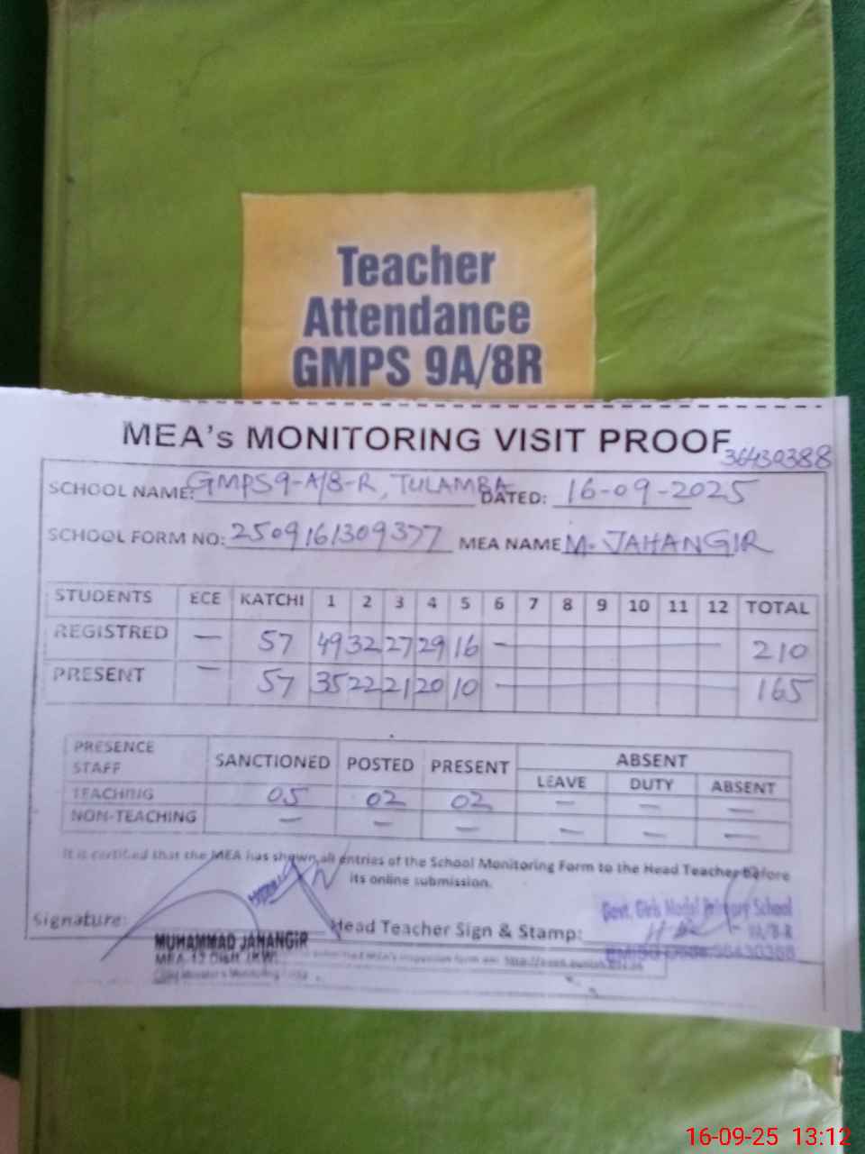 | EMIS Code: 36430388 | Name of School: GMPS 9-A/8-R, P/O ABDUL HAKIM, TULAMBA | |||