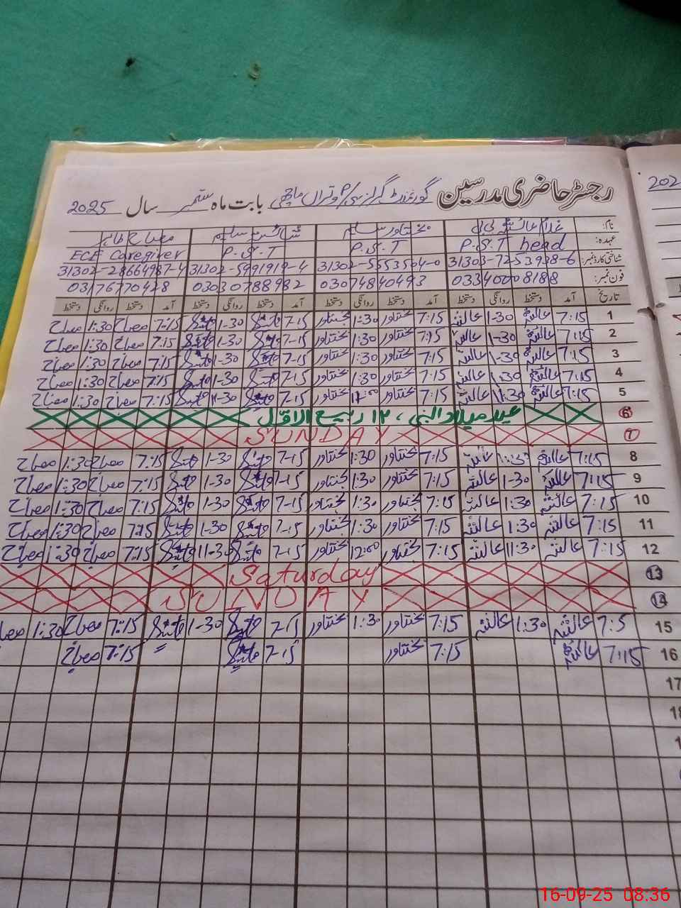 | Monitoring Date: 16-09-2025 | Start Time: 16-09-2025 07:50 AM | End Time: 16-09-2025 08:39 AM | Name of MEA: Kh**** Fa**** | |