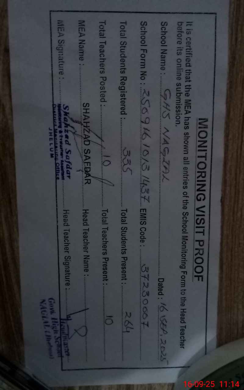 | EMIS Code: 37230007 | Name of School: GHS NAGIAL | |||