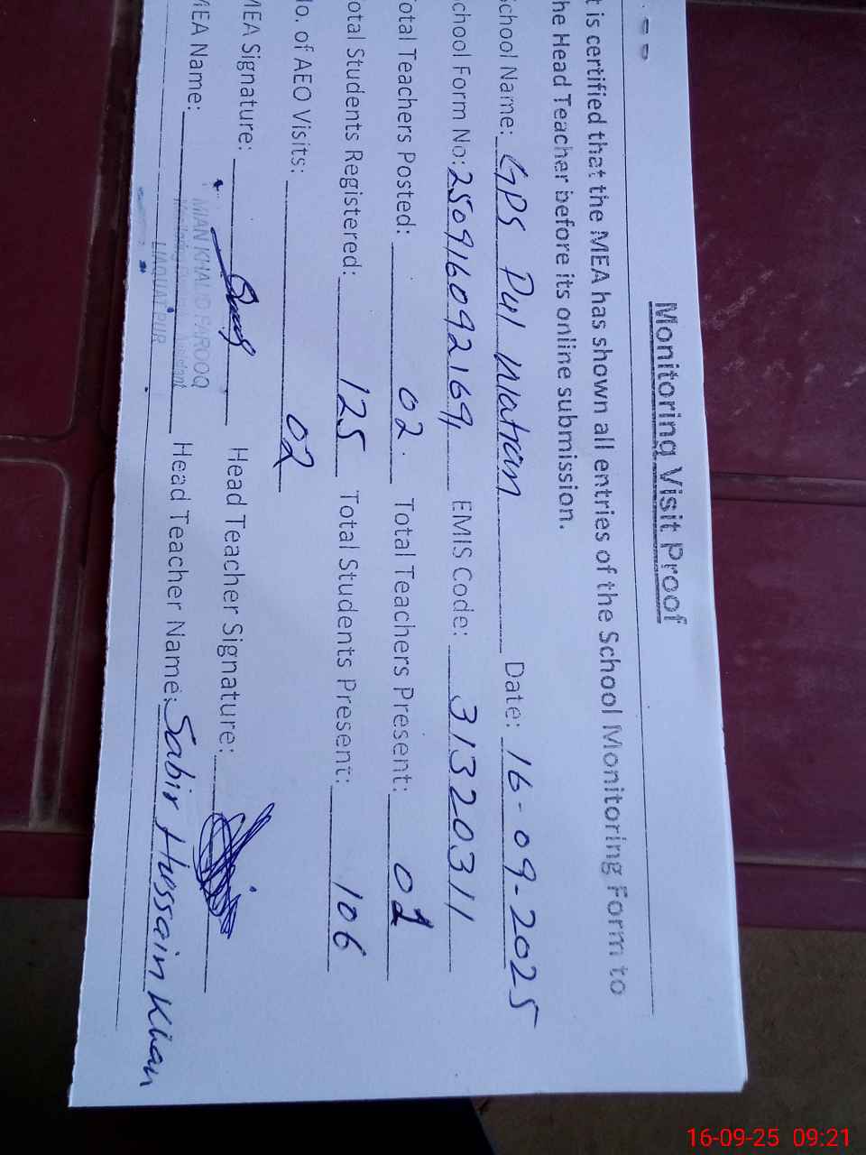 | EMIS Code: 31320311 | Name of School: GPS PUL WATRAN | |||