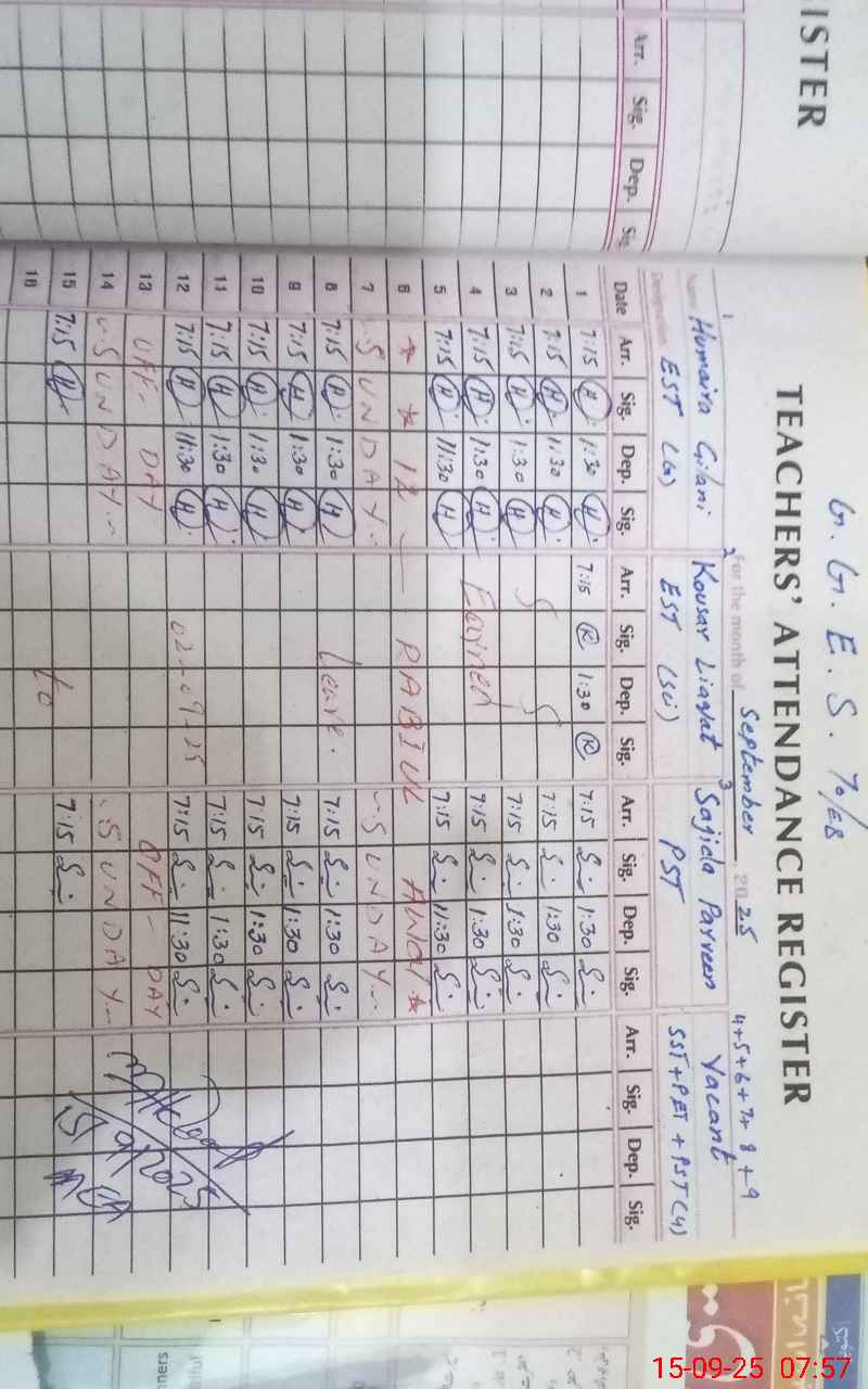 | Name: HU**** GI**** Designation: (School Headmaster's/Headmistress's) EST G Phone/Cell Number: 03**** |