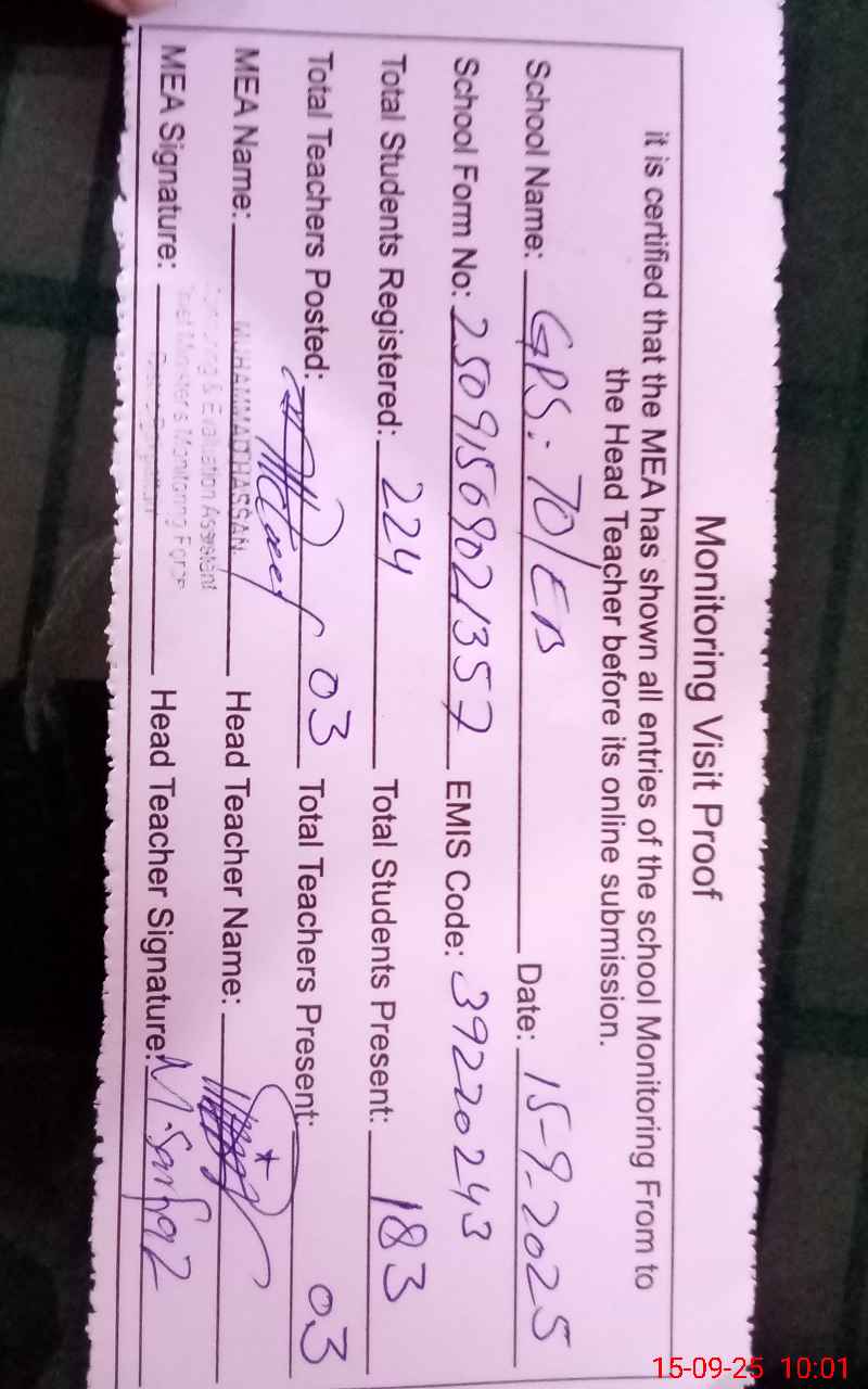 | EMIS Code: 39220243 | Name of School: GPS 70/EB ARIFWALA | |||