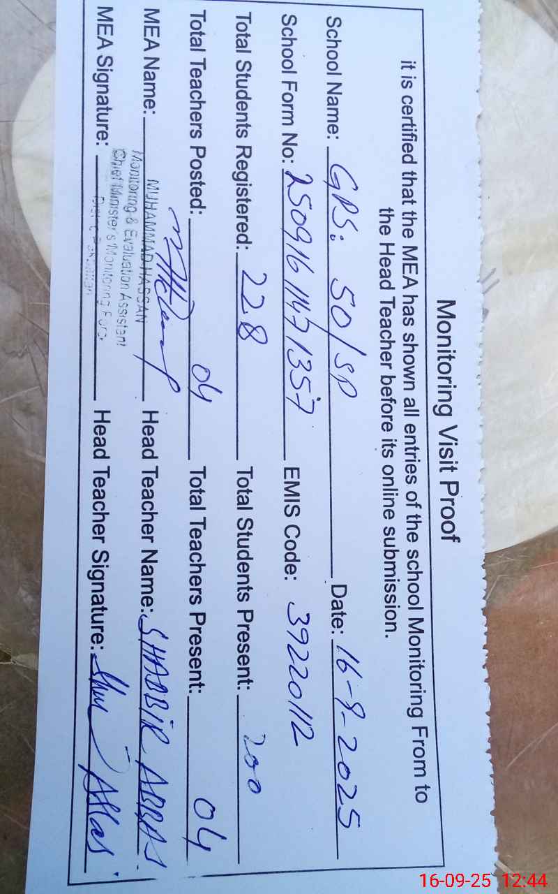 | EMIS Code: 39220112 | Name of School: GPS 50 SP | |||