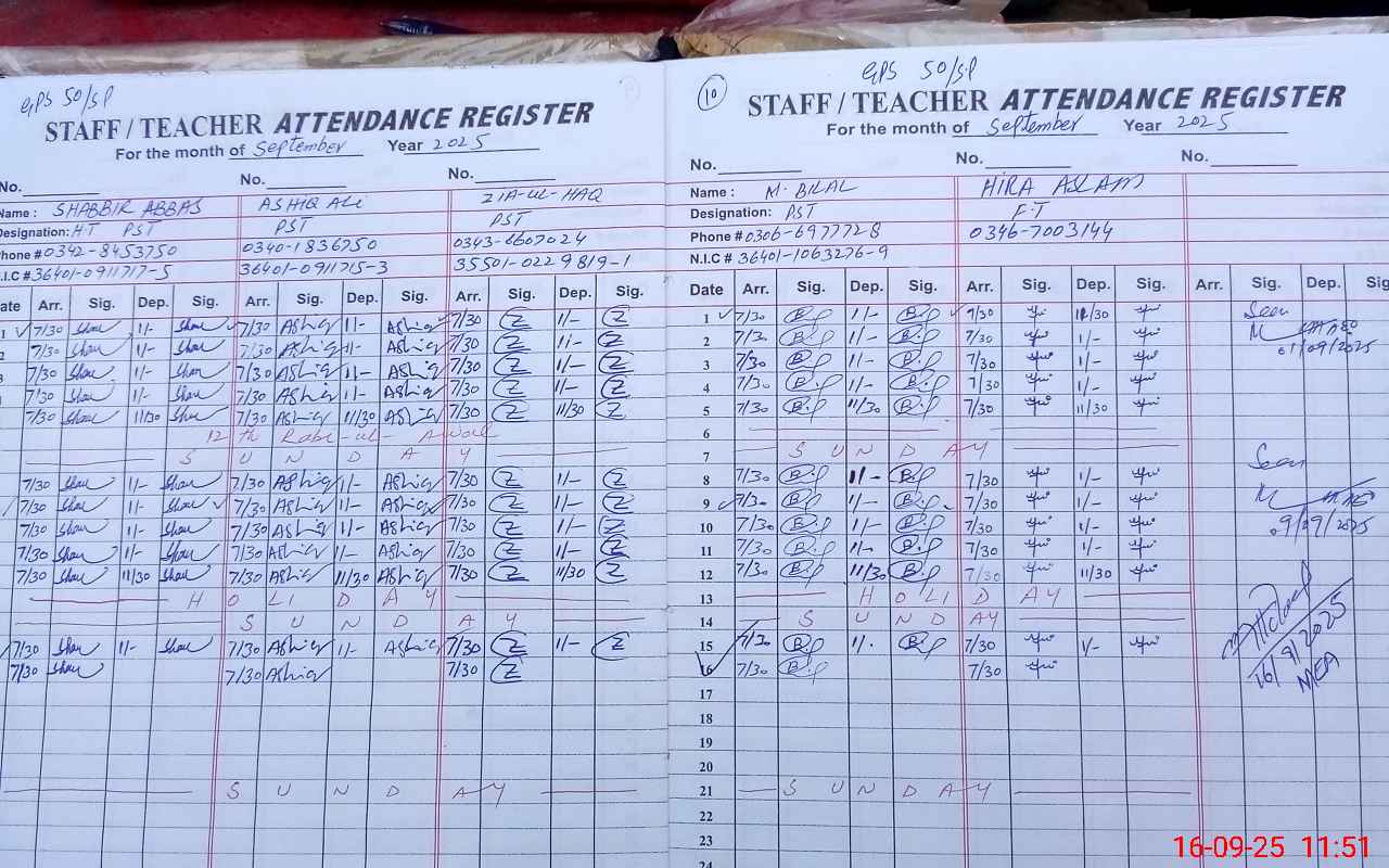 | Name: SH**** AB**** Designation: (School Headmaster's/Headmistress's) PST Phone/Cell Number: 03**** |