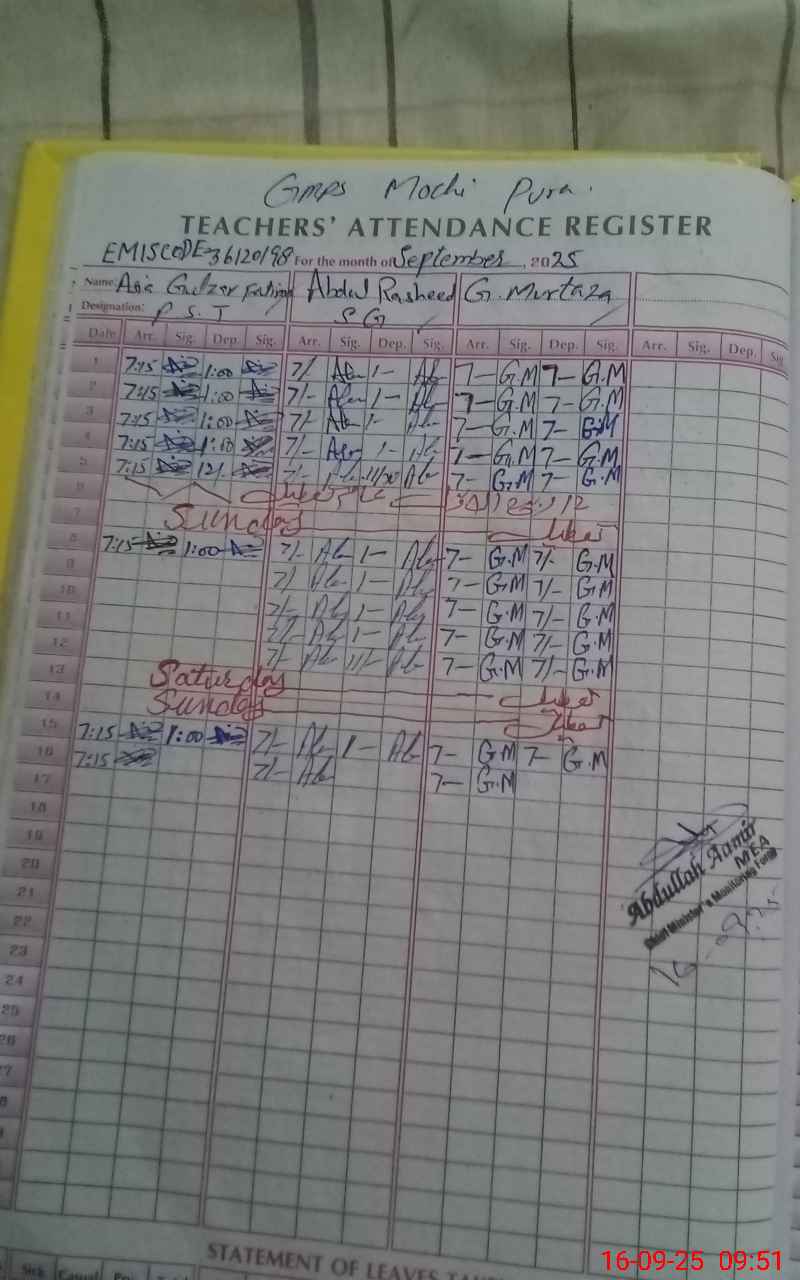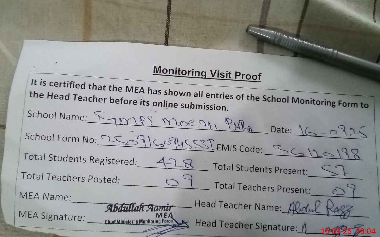 | EMIS Code: 36120198 | Name of School: GMPS MOCHI PURA SHUJABAD DISTT. MULTAN | |||