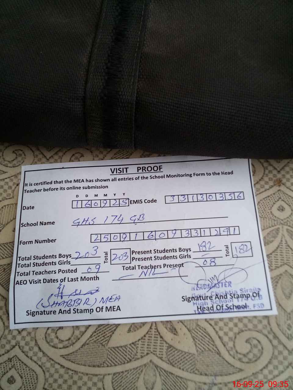| EMIS Code: 33130356 | Name of School: GHS CHASHTIA SARJIA CHAK 174 GB SAMUNDRI FSD | |||