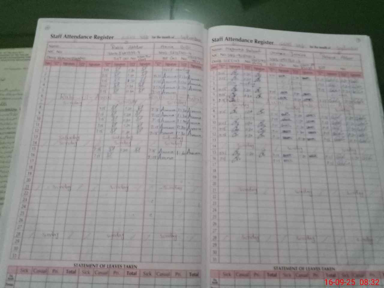 | CNIC | Full Name | Designation | R/C | Absence During Last Calender Month |