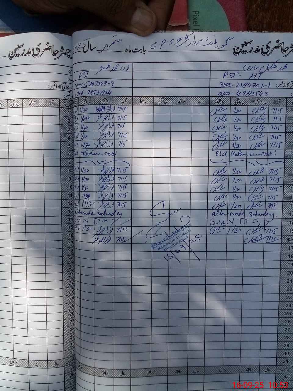 | Name: MU**** Sh**** Designation: (School Headmaster's/Headmistress's) PST Phone/Cell Number: 03**** |