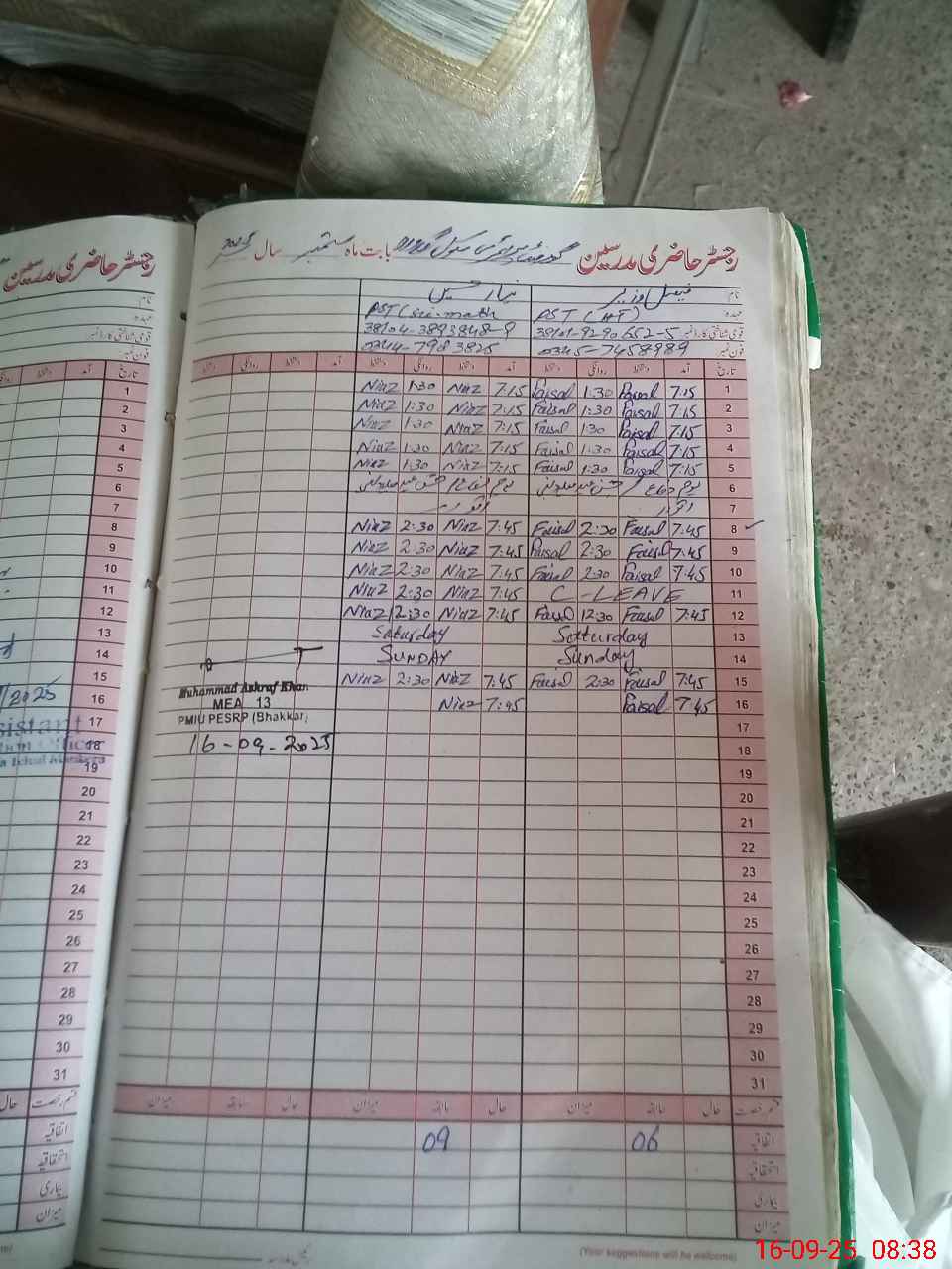 | Monitoring Date: 16-09-2025 | Start Time: 16-09-2025 08:21 AM | End Time: 16-09-2025 08:38 AM | Name of MEA: Mu**** As**** | |