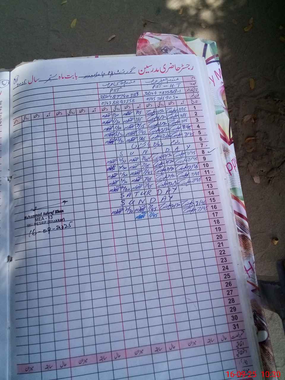 | Name: Gh**** Ja**** Designation: (School Headmaster's/Headmistress's) PTC Phone/Cell Number: 03**** |