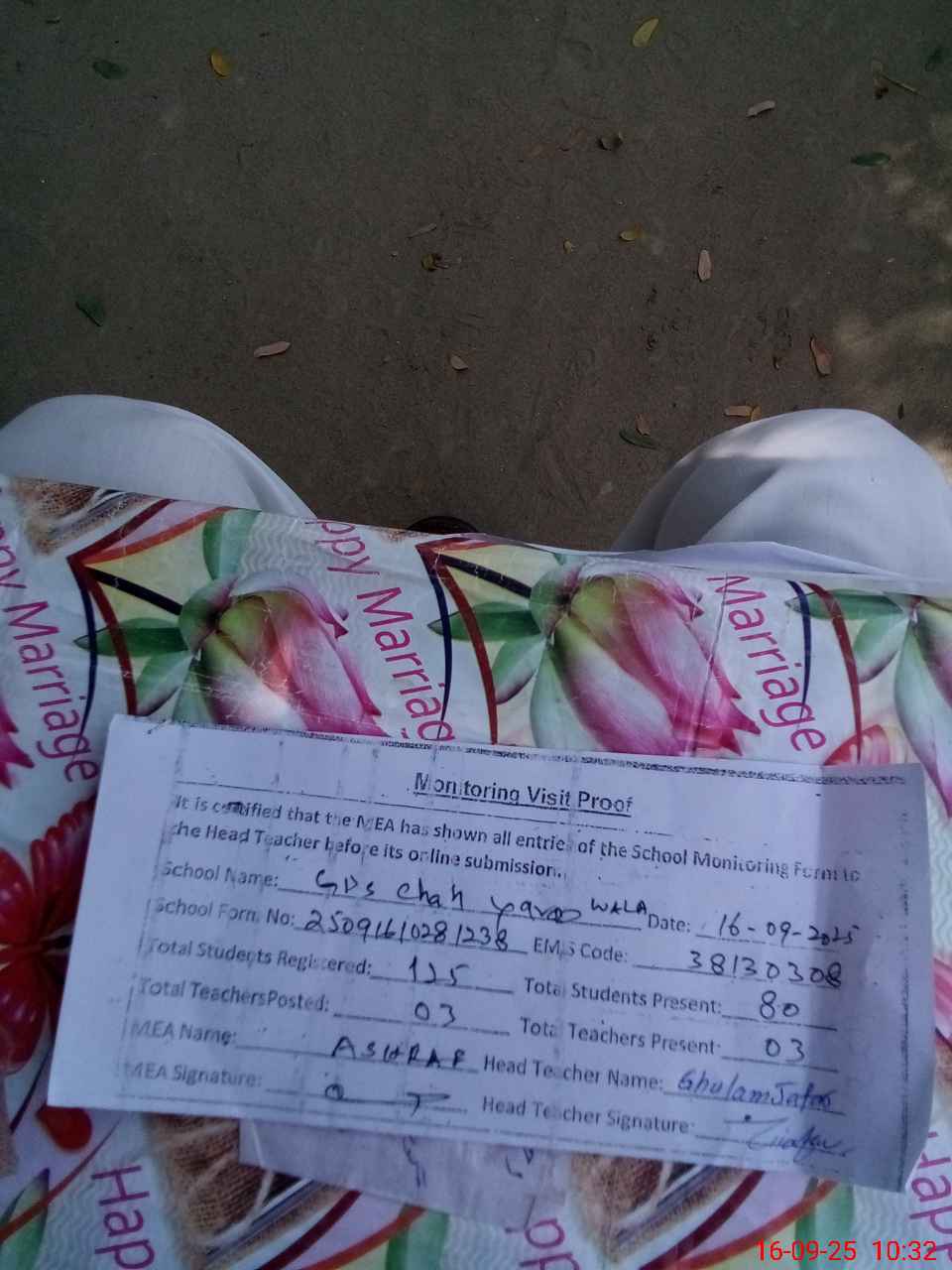 | Attendance Register | Head Teacher | MEA with School | Visit Proof |