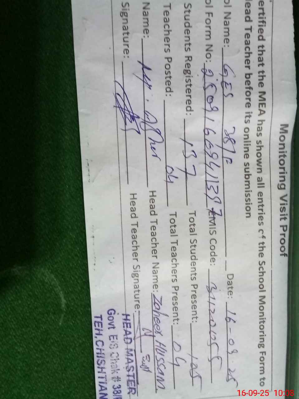 | EMIS Code: 31120055 | Name of School: GES CHAK NO. 38/F | |||