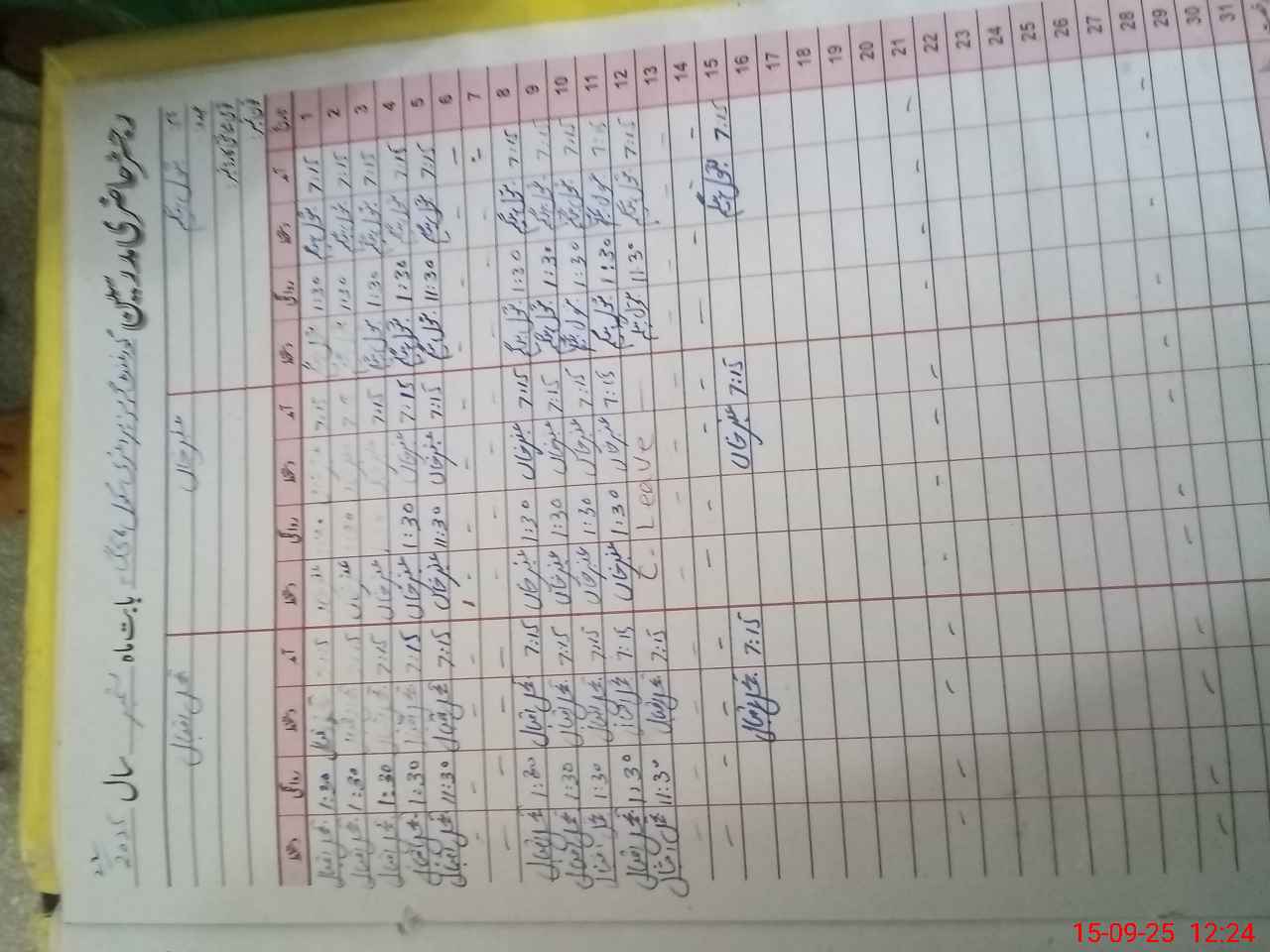 | CNIC | Full Name | Designation | R/C | Absence During Last Calender Month |